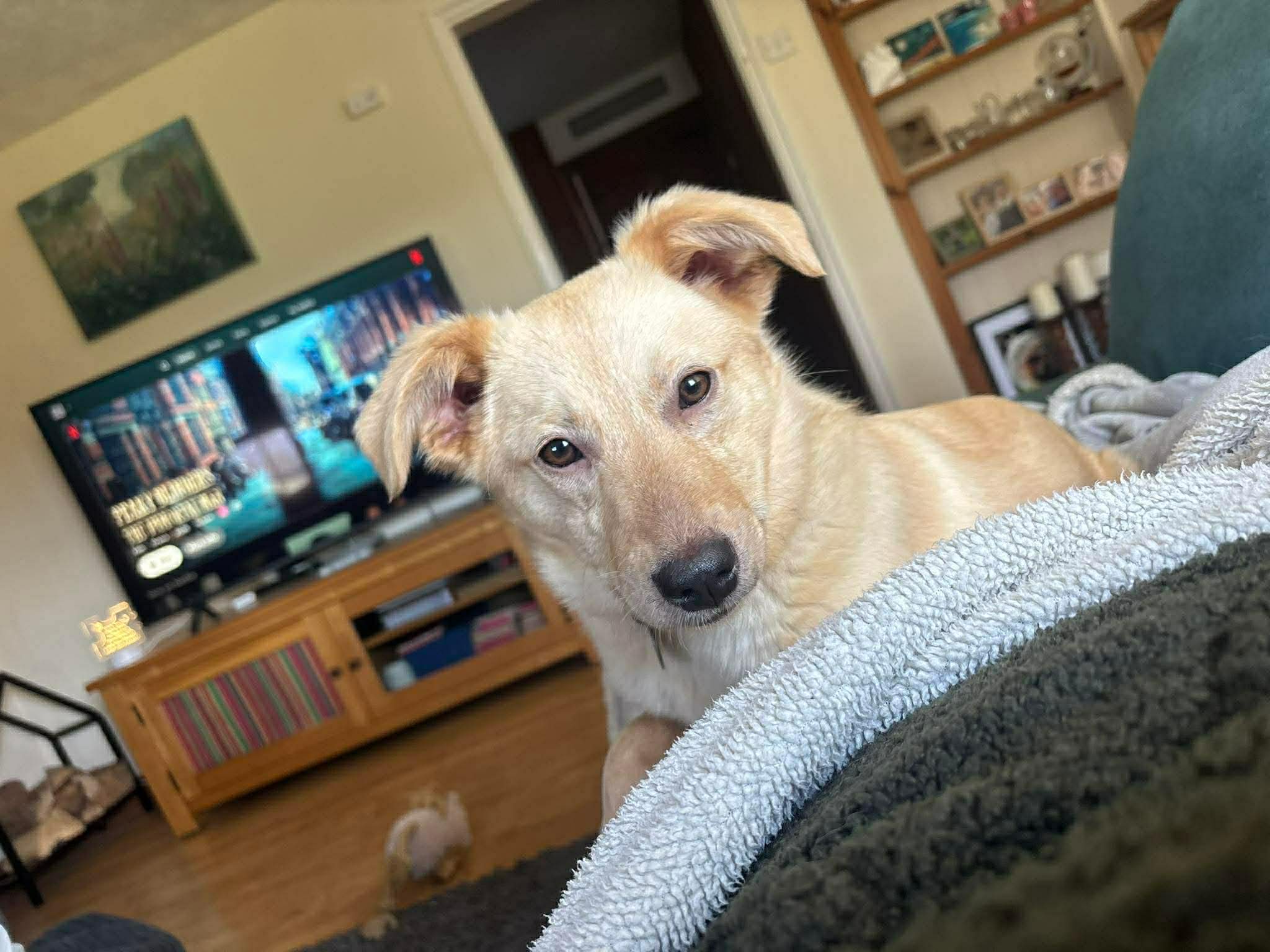 💙At home, Dulcea is cuddly and content, enjoying snuggling up on the sofa or her blanket with a chew or toy. She does need a little encouragement when approaching doorways or gateways, but she is building confidence and responding well.