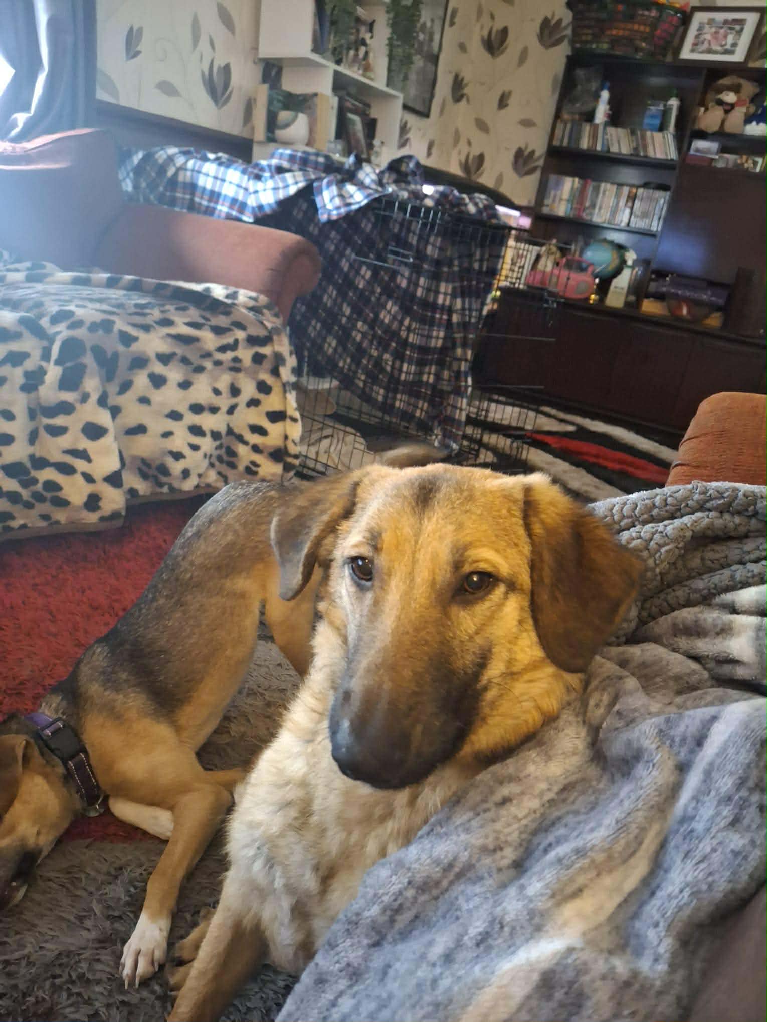 🧡Max is fully toilet trained and loves his crate he takes himself off to his crate at bedtime or if his foster is going out, he is fine being left for a few hours and sleeps through the night without a peep. He isn’t keen on the lead and has only managed 1 walk so far, as they are scary for him. He is a clever boy and has learnt some commands already such as sit, come, here and he knows his name.